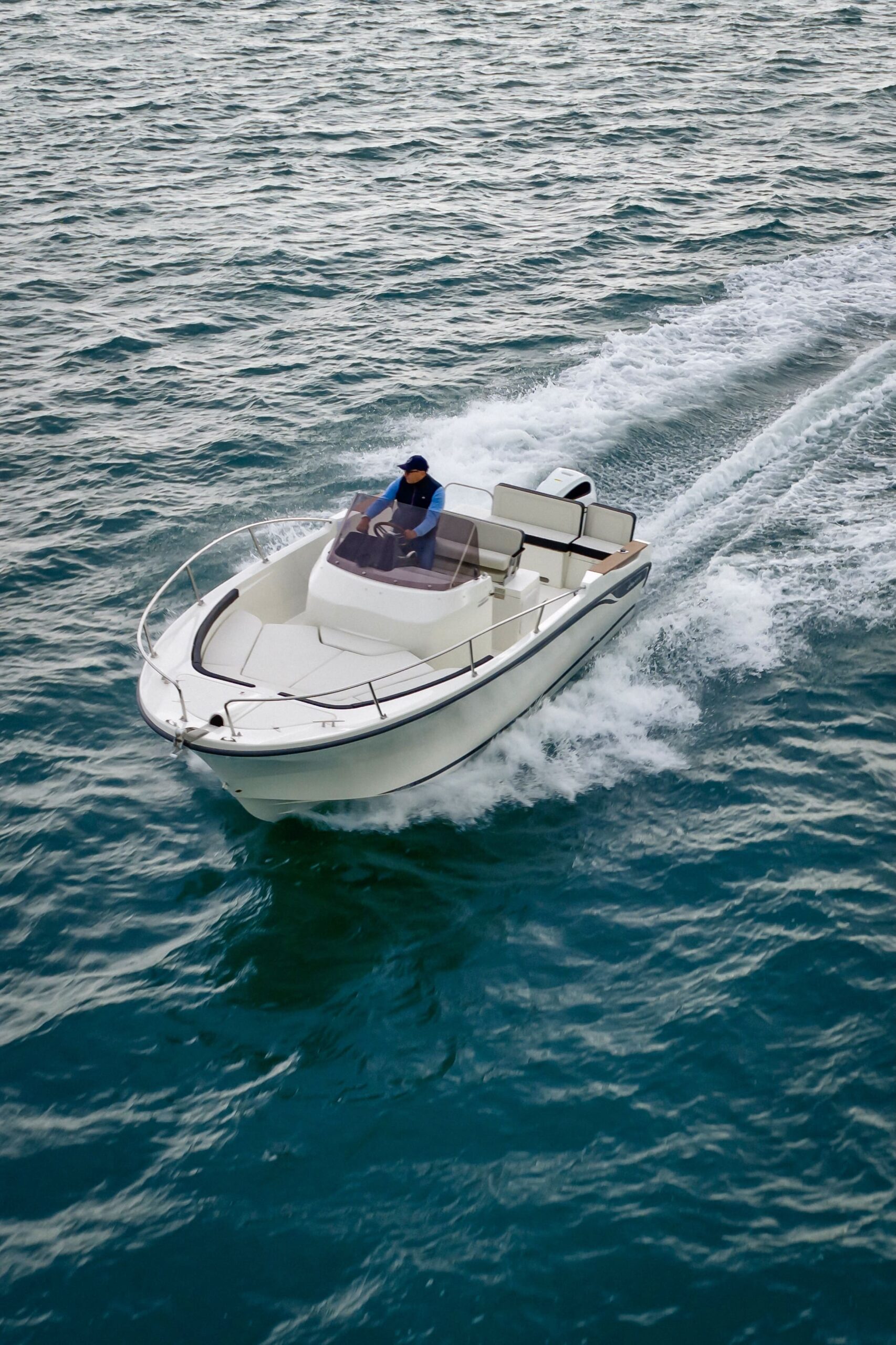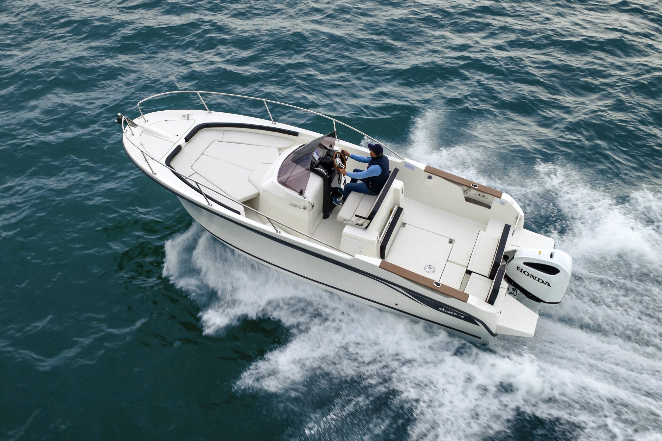 Conçu avec une coque en infusion pour garantir solidité et légèreté, l'Abaco 710 Open vous offre tout ce qu'il faut pour profiter de la mer en famille ou entre amis, avec un confort optimal à chaque moment.