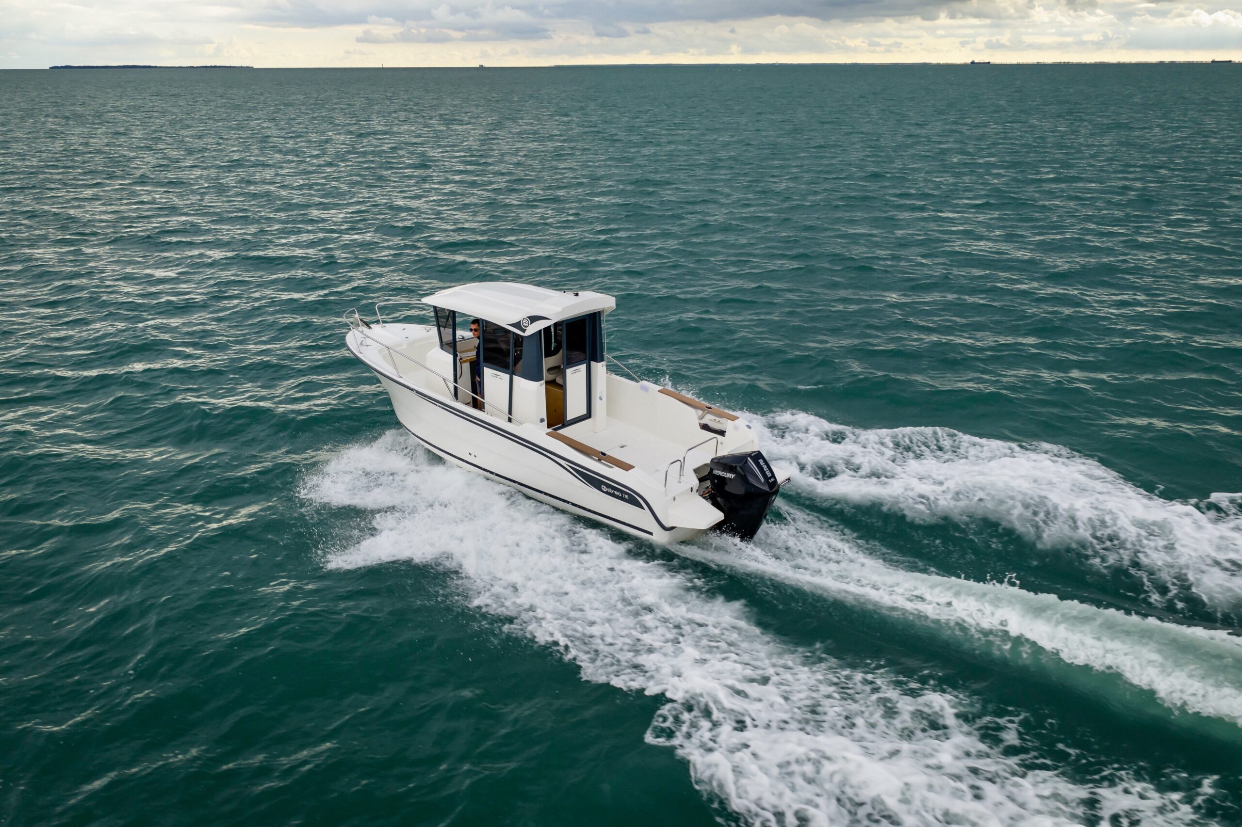 L’Ostrea 710 Timonier : un bateau qui combine parfaitement pêche, confort et fonctionnalité.
