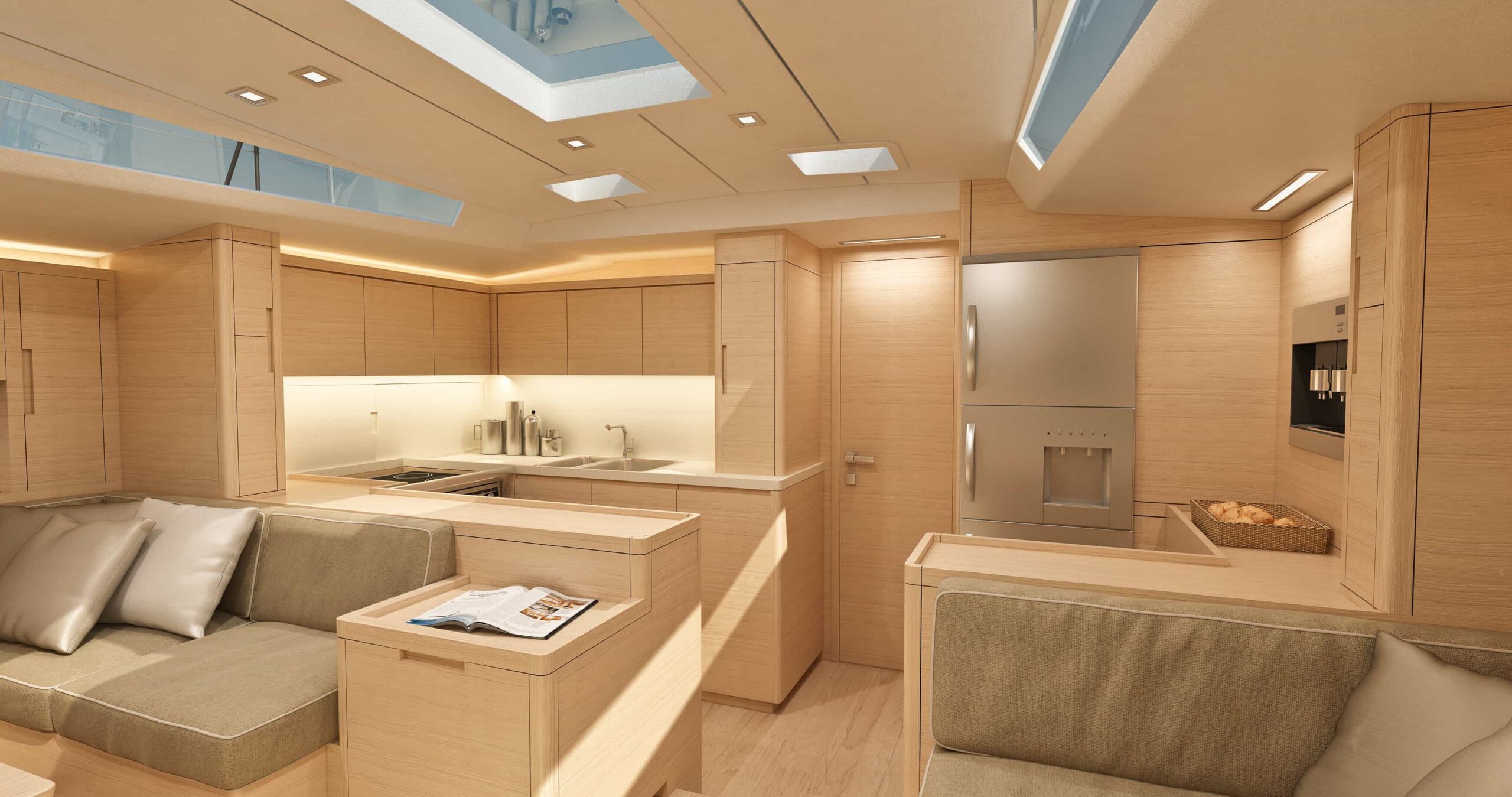 Lauréat du prix du Bateau de l'Année dans la catégorie Design Intérieur, l'Advanced A66 représente une véritable révolution dans le monde des croiseurs performants. La configuration du salon semi-surélevé, associée à de larges baies vitrées offrant une vue panoramique à 360°, procure une sensation d'espace lumineuse et agréable, et donne l'impression d'être à bord d'un yacht beaucoup plus grand.